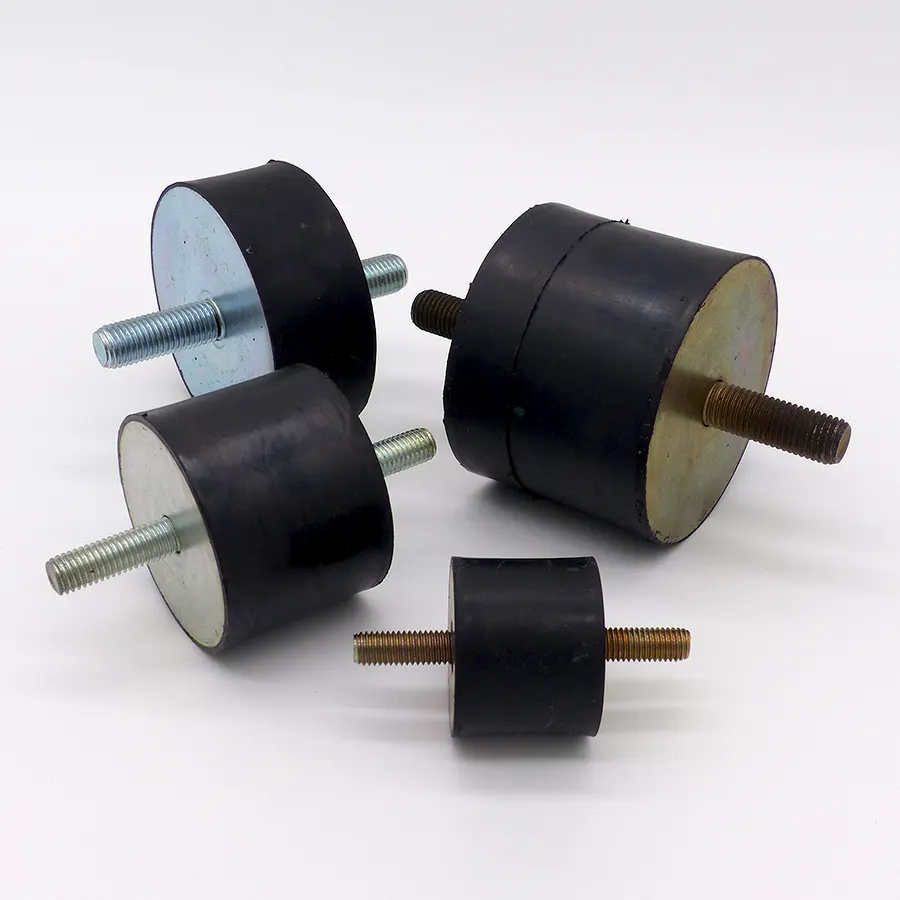 Gummi-Metall-Puffer mit verschiedenen Durchmessern, Höhen und unterschiedlichen Gewindestärken.